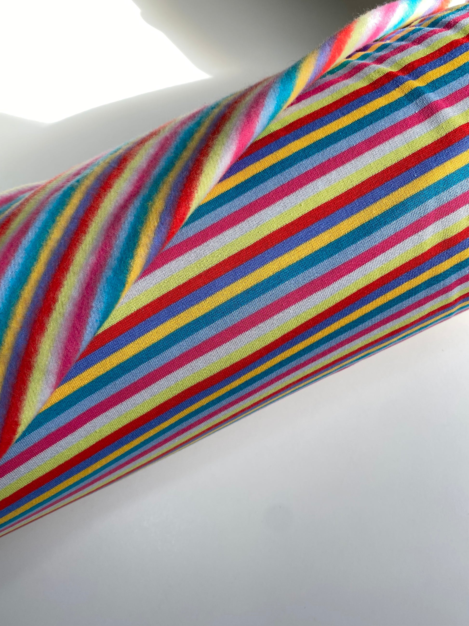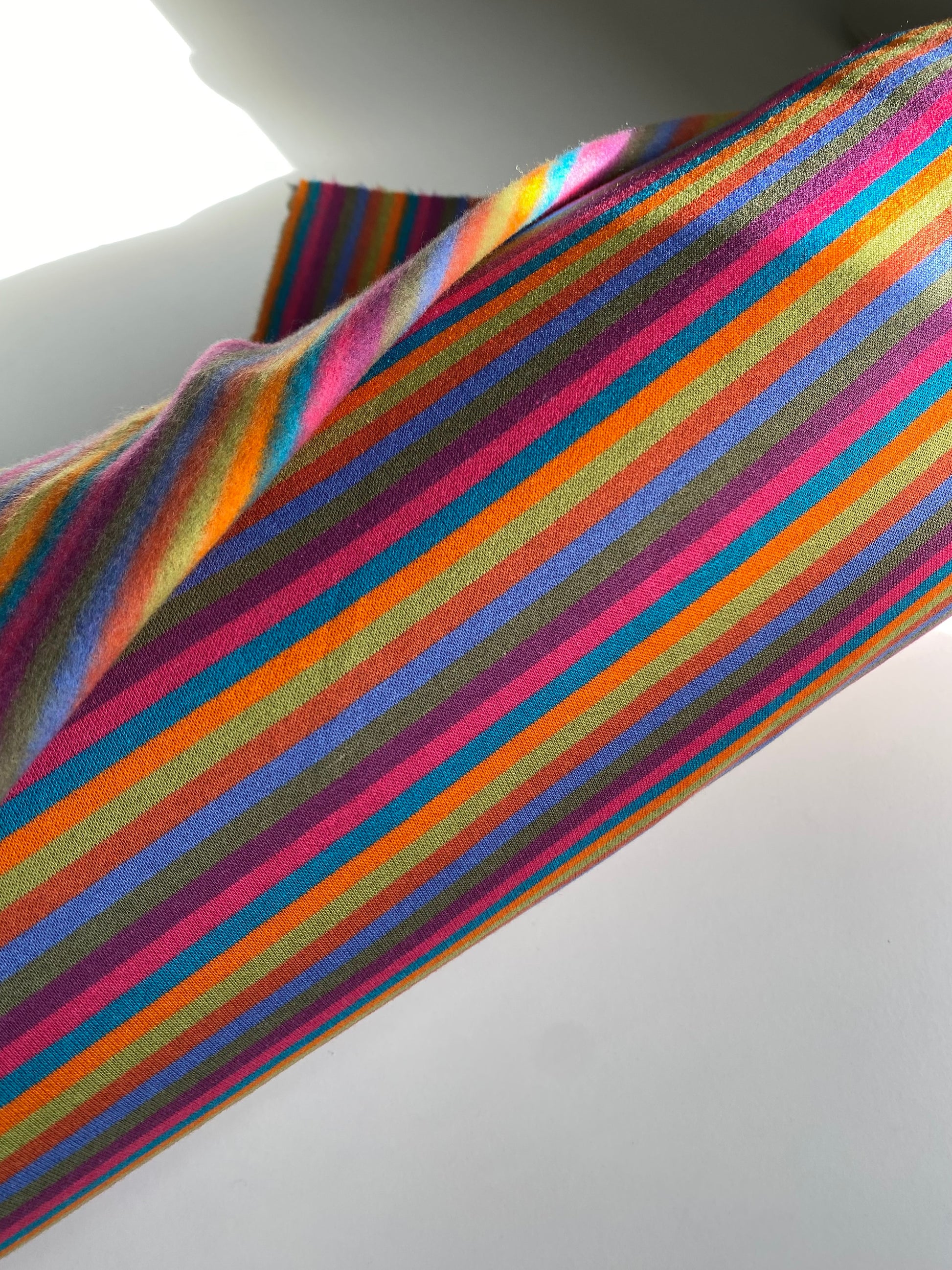 Pantalón largo de punto elástico con cintura elástica y bajo ligeramente acampanado que permite total libertad de movimiento. El diseño de rayas aporta un toque moderno y sofisticado. Disponible en tres tejidos para combinar como quieras.