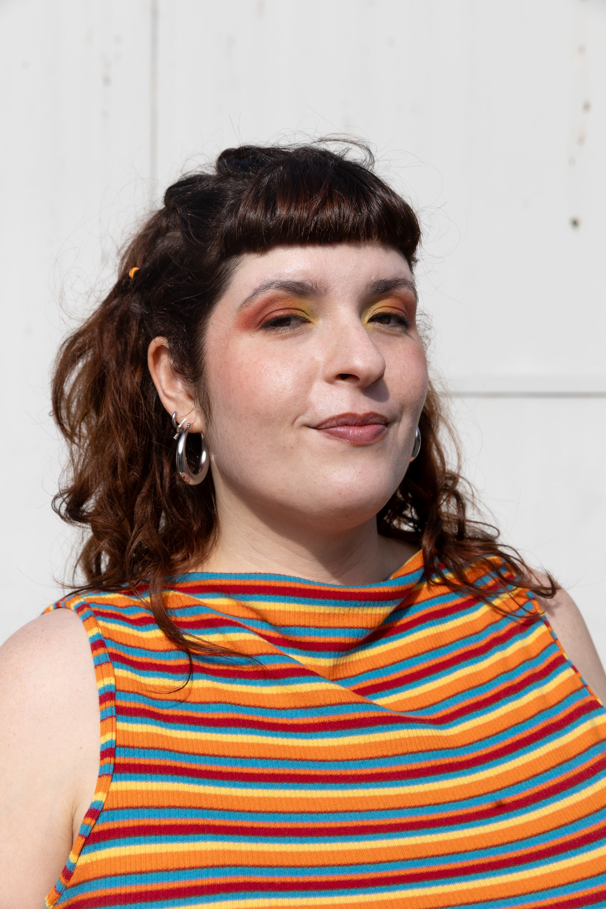 Top sin mangas confeccionado en punto suave con finas rayas y cuello bajo con un ligero borde de tejido. Su corte recto y cómodo se adapta fácilmente al cuerpo. Disponible en dos combinaciones de color del tejido.